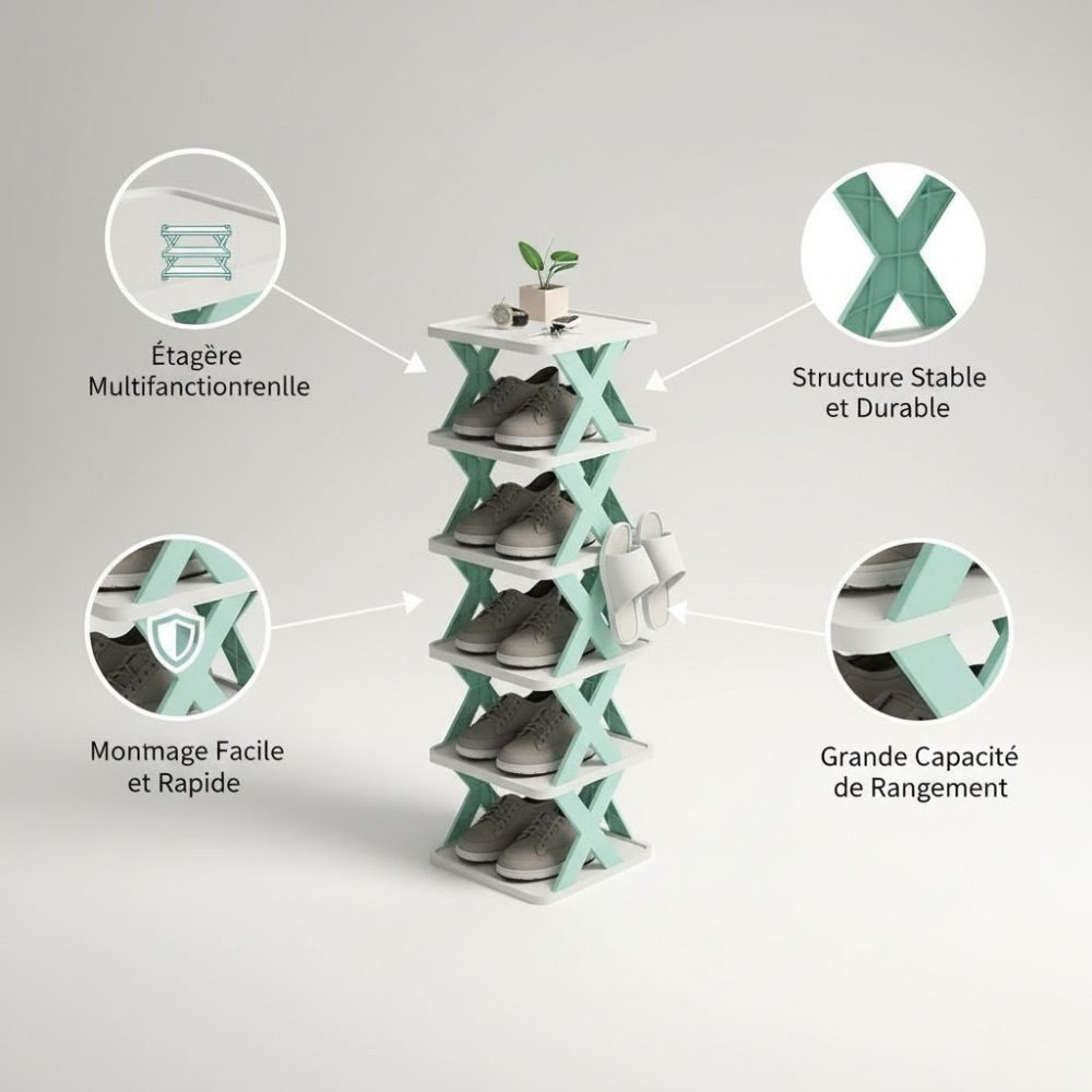 Optimisez votre espace avec cette étagère à chaussures pliable, au design pratique et moderne. Conçue pour ranger efficacement vos chaussures, baskets ou accessoires, elle s’intègre parfaitement dans une entrée, une chambre ou un dressing. Sa structure empilable et pliable permet un gain de place considérable, tout en maintenant vos affaires bien organisées. Solide, légère et facile à monter, elle offre une solution de rangement élégante et durable.