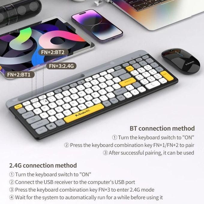 Connectivité Polyvalente : Fonctionne avec Bluetooth 5.0 et 2,4 GHz, offrant une connexion stable et rapide pour divers appareils, tels que PC, tablettes et smartphones.Conception Compacte : Design ergonomique et compact, idéal pour économiser de l’espace sur votre bureau tout en offrant un confort de frappe supérieur.Touches Mécaniques de Haute Qualité : Les touches mécaniques garantissent une réactivité exceptionnelle et une durabilité accrue, avec une durée de vie moyenne de 50 millions de frappes.Rétroéclairage Personnalisable : Équipé d’un rétroéclairage LED avec plusieurs modes et couleurs, idéal pour travailler ou jouer dans des conditions de faible luminosité.Longue Autonomie : Batterie intégrée offrant une autonomie prolongée avec une seule charge, parfaite pour une utilisation quotidienne.