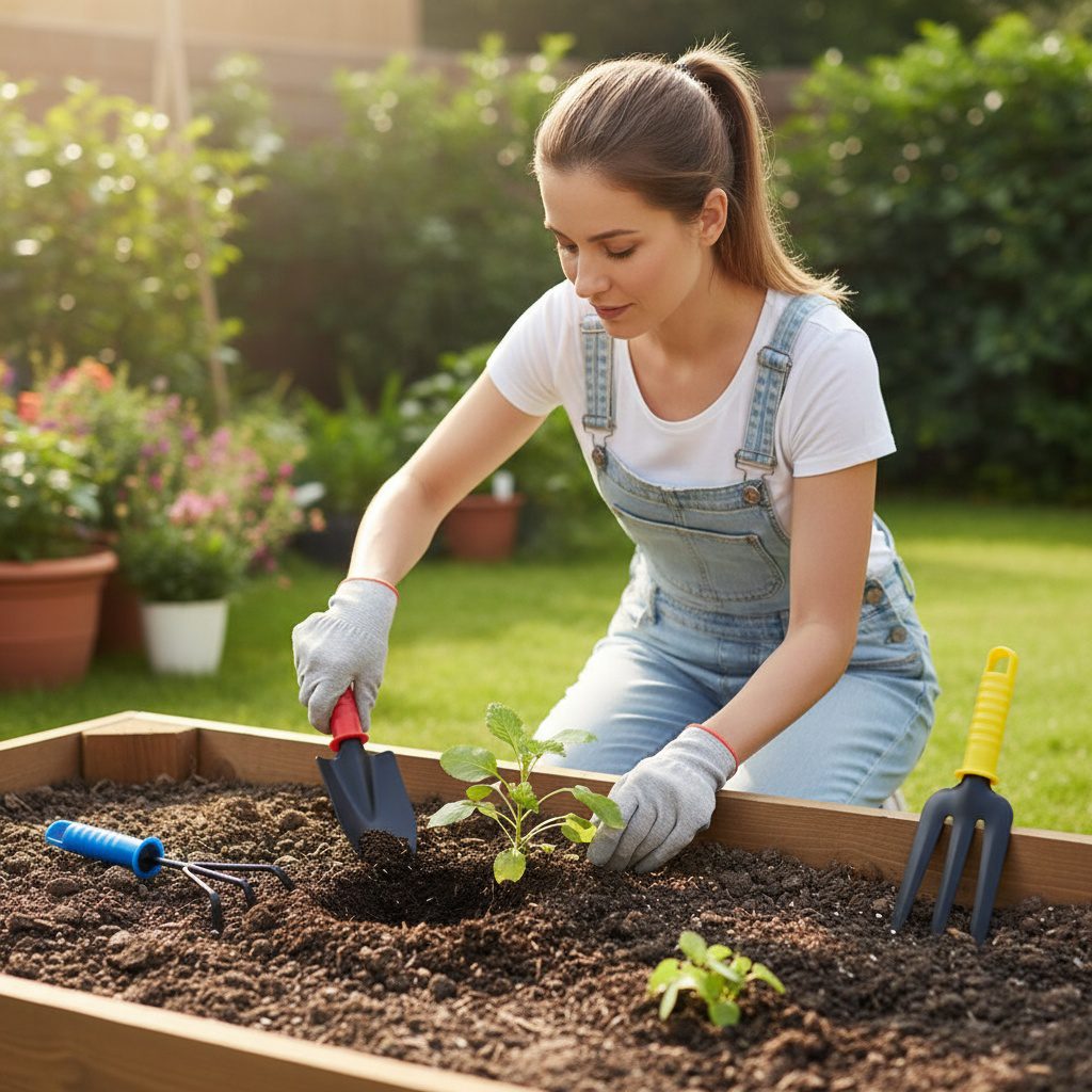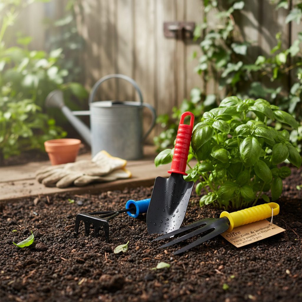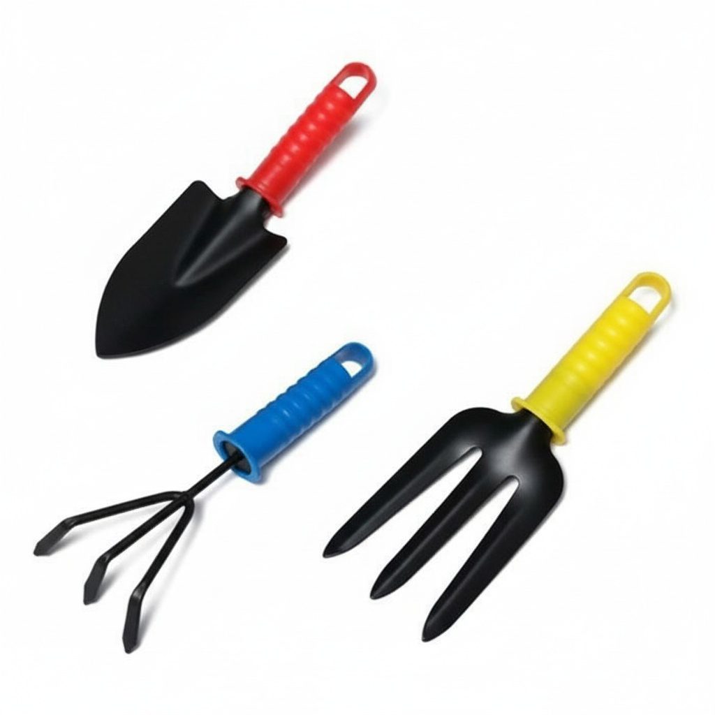 Ensemble de jardin 3 articlesUn ensemble d’outils de jardin comprend une pelle à planter, une fourche et un ripper. La partie travaillante des outils est en métal avec un revêtement spécial anticorrosion. Les poignées sont en plastique de haute qualité. Les poignées ont également des trous pour accrocher.