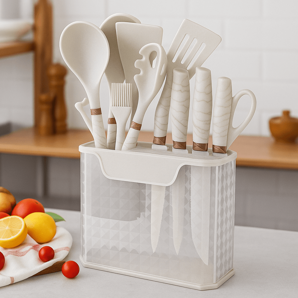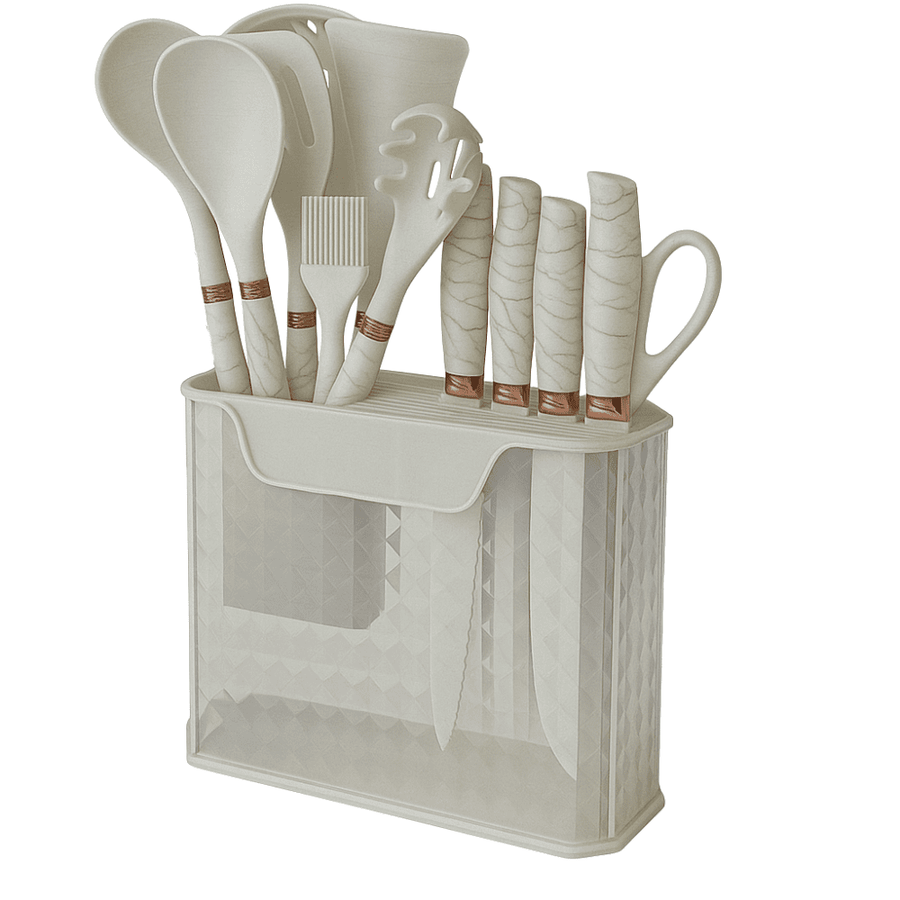 Chaque pièce est fabriquée avec des matériaux résistants à la chaleur et sans BPA, garantissant une utilisation sûre et durable. Les poignées ergonomiques assurent une prise en main confortable, tandis que les têtes en silicone ou nylon protègent vos casseroles et poêles antiadhésives.