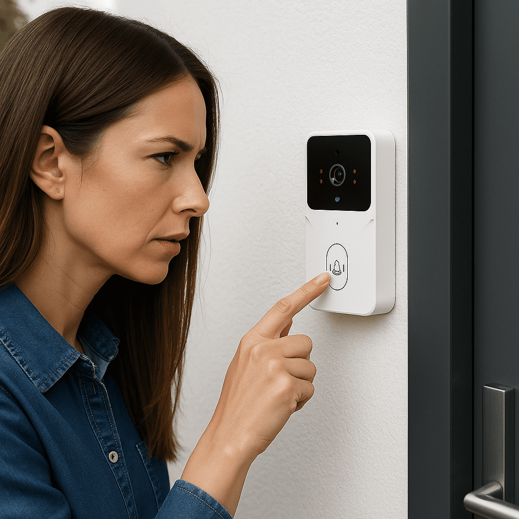 Surveille ta porte et échange avec tes visiteurs où que tu sois grâce à cette sonnette connectée intelligente.