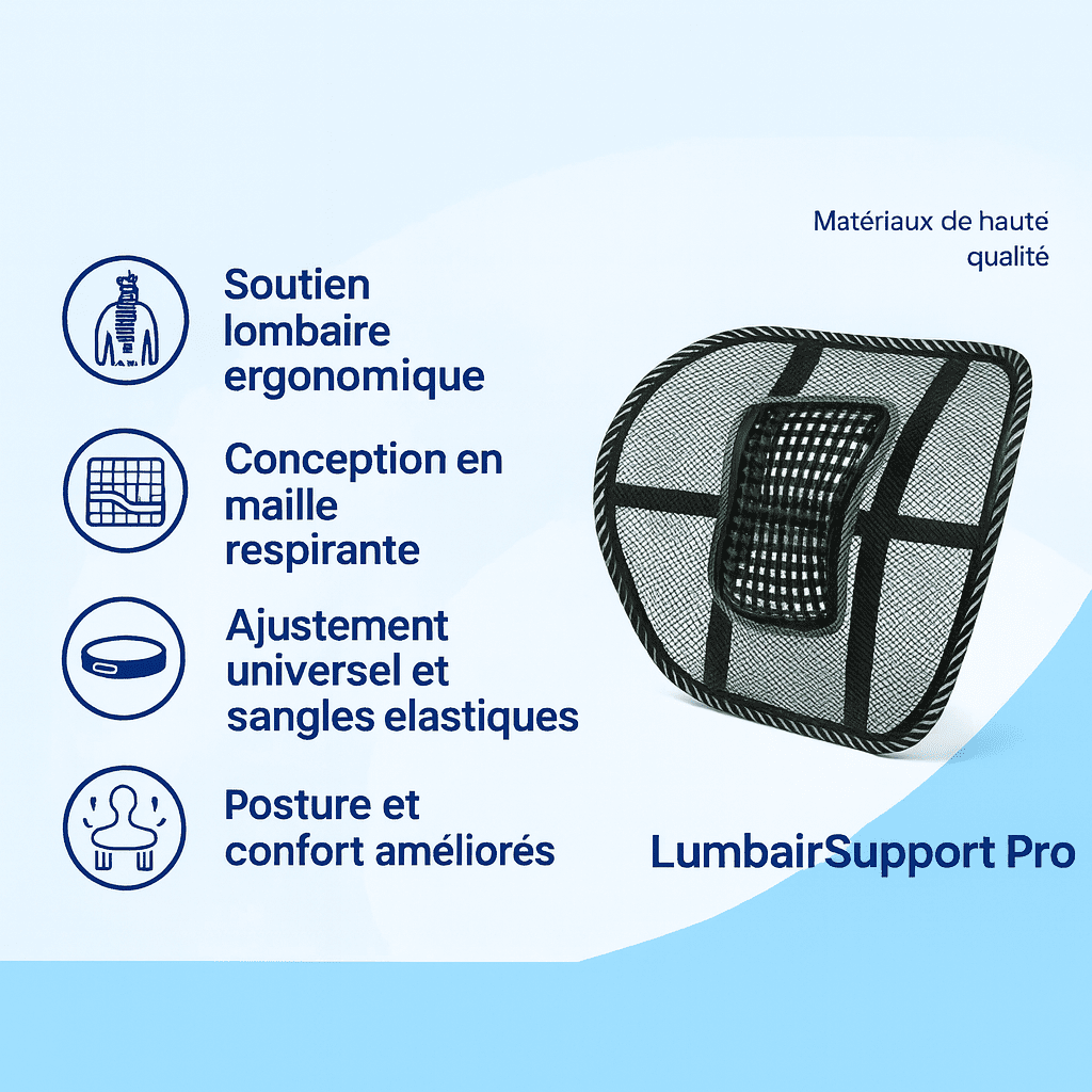 Améliorez instantanément votre posture et réduisez les douleurs lombaires grâce à ce support ergonomique à maille respirante. Conçu pour s’adapter à toutes les chaises de bureau, sièges de voiture ou fauteuils, il soutient parfaitement la courbure naturelle du bas du dos. Sa structure flexible et son coussin massant central offrent un confort incomparable pour les longues heures assises au travail, en conduite ou à la maison.