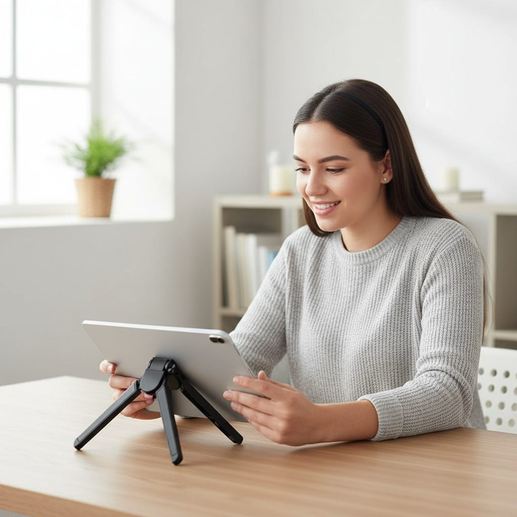 Support polyvalent pour tablette, ordinateur portable et téléphone, pliable et ajustable. Idéal pour le travail, l’étude ou le divertissement, il offre confort et efficacité. Fabriqué en métal ABS, il garantit stabilité et durabilité tout en étant facilement transportable.