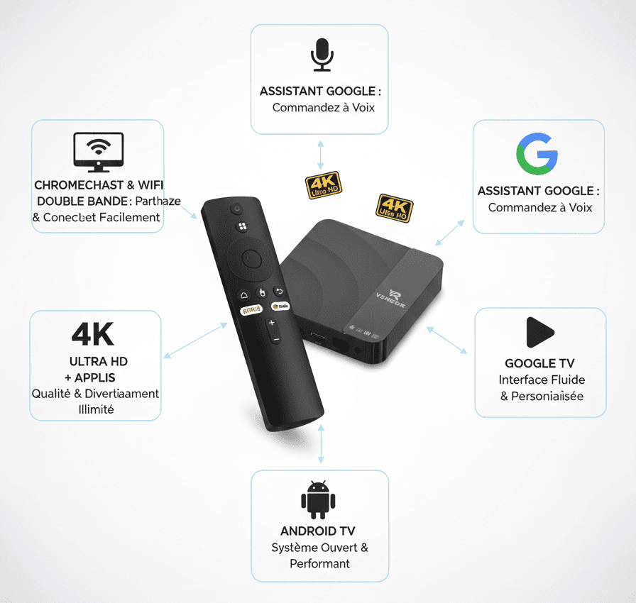 VENCUR BOX S – Android TV Box 4K Ultra HD + 3 Ans d’Abonnement
