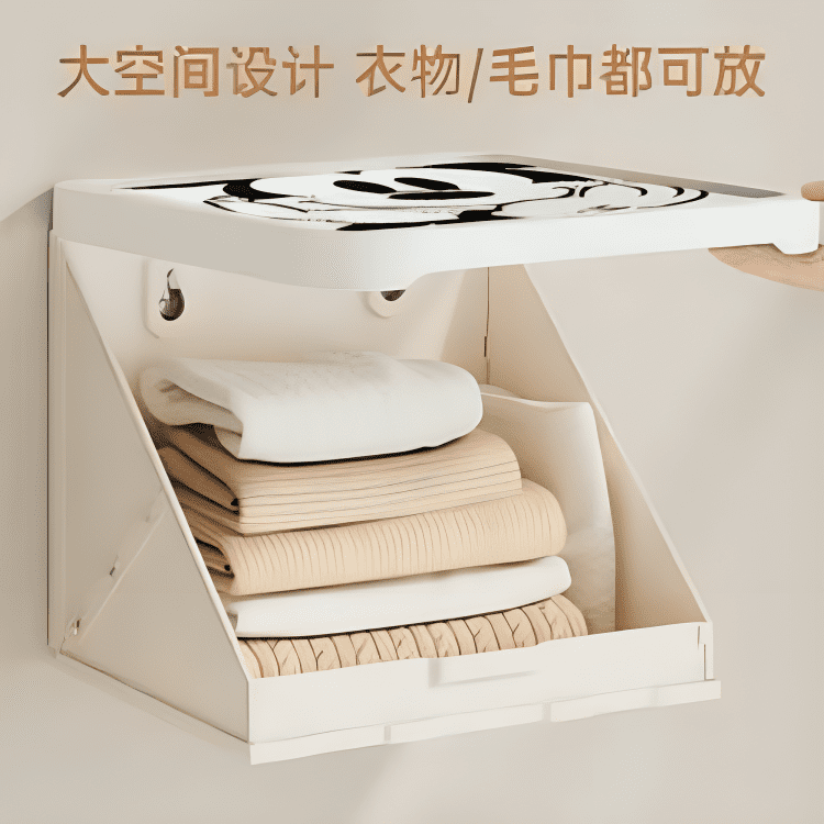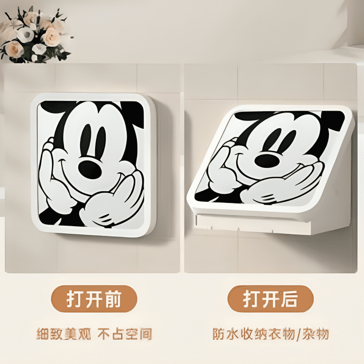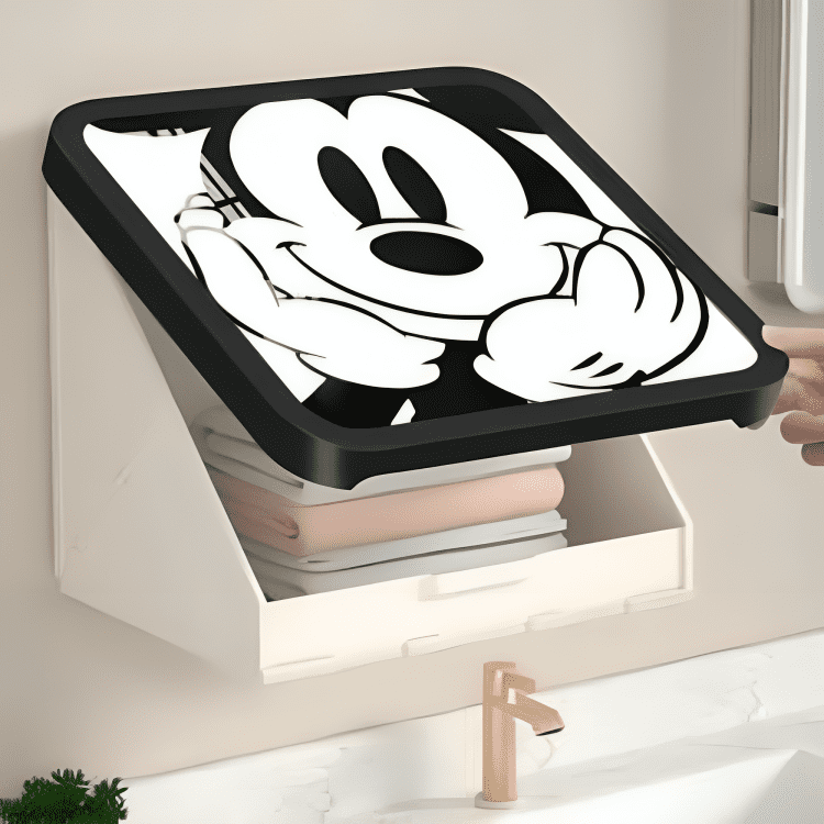 Apportez une touche ludique et pratique à votre intérieur avec cette boîte murale de rangement ornée d’un couvercle au design Mickey. Idéale pour organiser vos serviettes, linges ou accessoires, elle s’installe facilement sur le mur pour gagner de la place et garder vos affaires à portée de main.